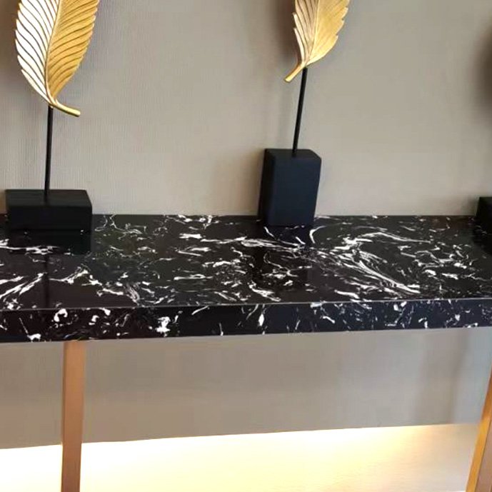 Midnight Lace is an exquisite engineered marble with a rich black base and delicate, fine white veining resembling a lace pattern. The intricate, subtle lines form a refined and sophisticated design, creating an elegant, understated look ideal for luxury interiors. Perfect for engineered marble countertops, bathroom vanities, and feature walls, Midnight Lace offers both exceptional durability and timeless beauty. Its delicate, lace-like pattern adds a touch of elegance and sophistication to any space, making it an ideal choice for high-end residential and commercial applications.